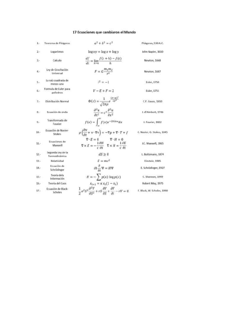 17 ecuaciones que cambiaron el mundo profe.mates.jac blog para tods (Mates)