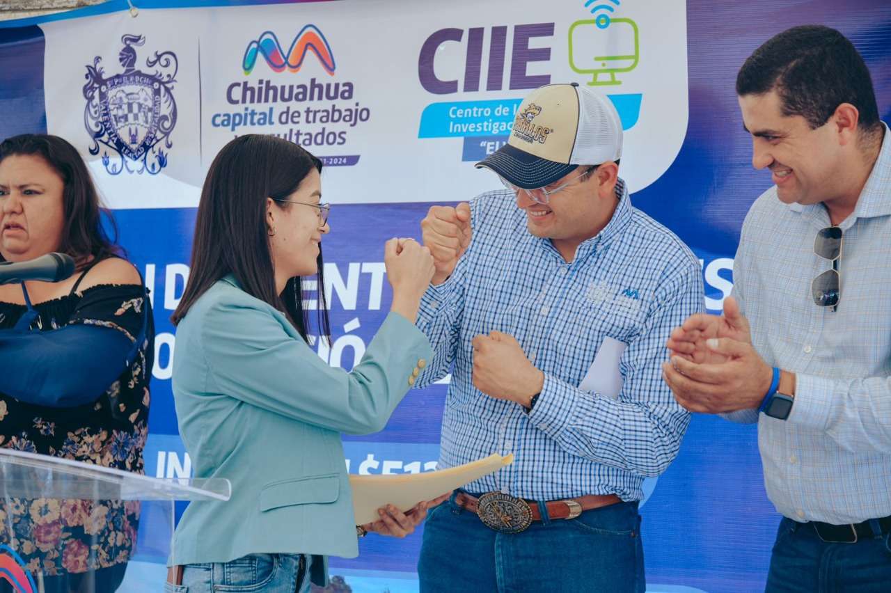 Entrega alcalde centro de cómputo el vallecillo La Opción de Chihuahua