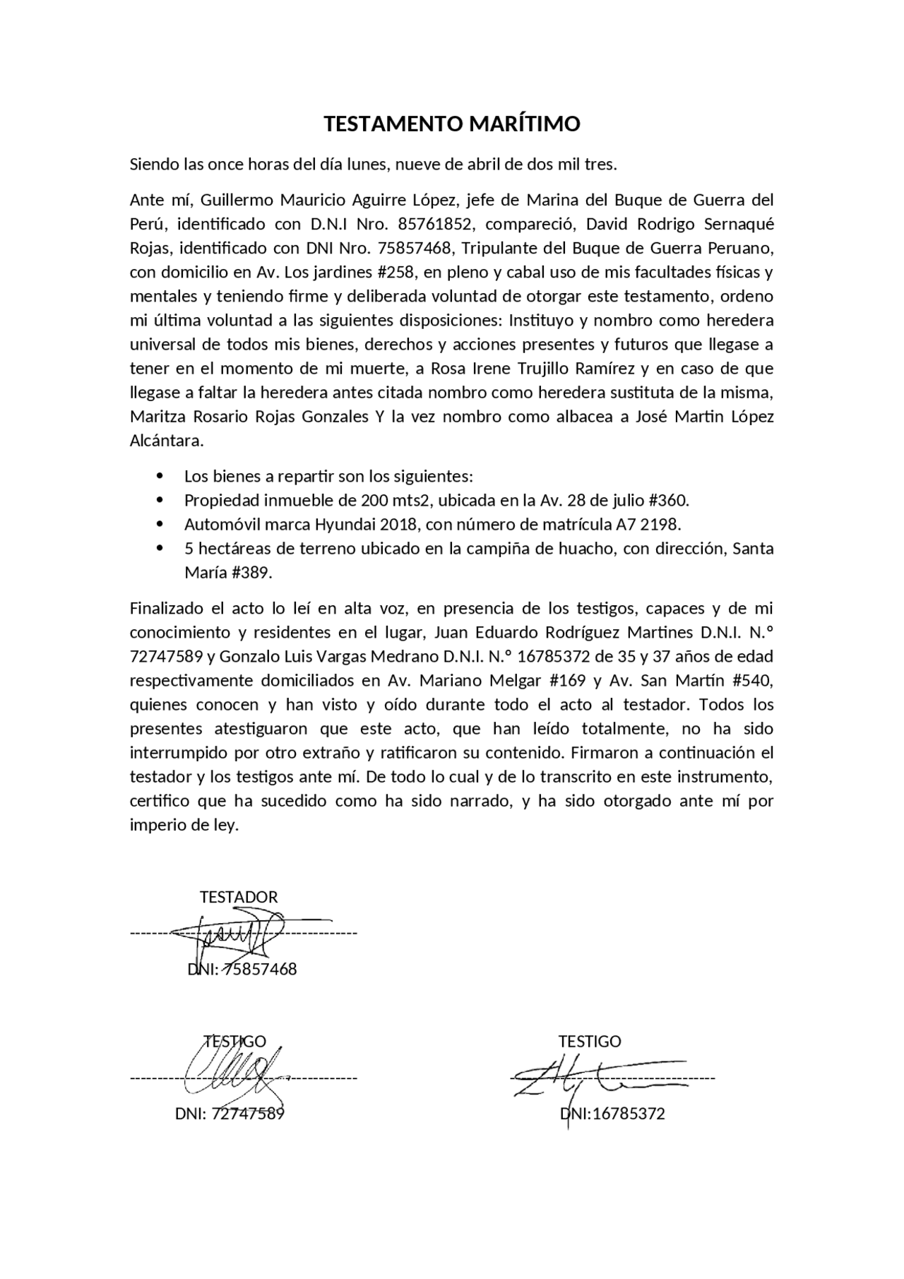 Testamento maritimo modelo Apuntes de Derecho Civil Docsity