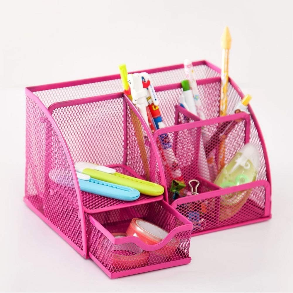 LJGG Caja organizadora de escritorio con 6 compartimentos, suministros de oficina de malla