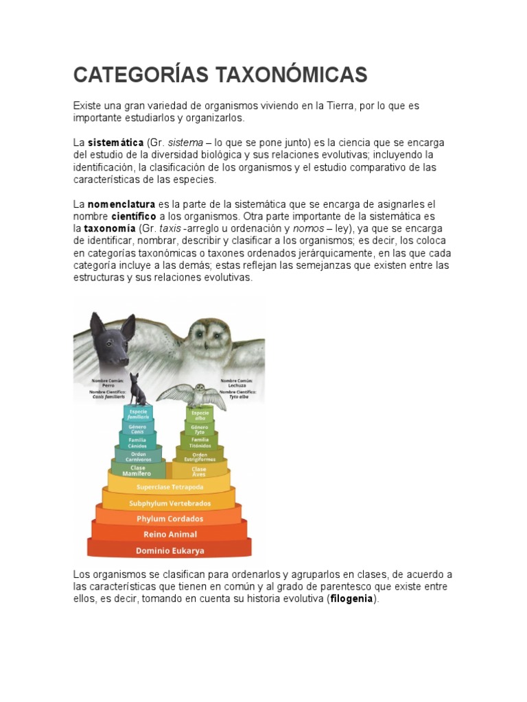 Taxonomía. Caracteres y categorías taxonómicas con ejemplos