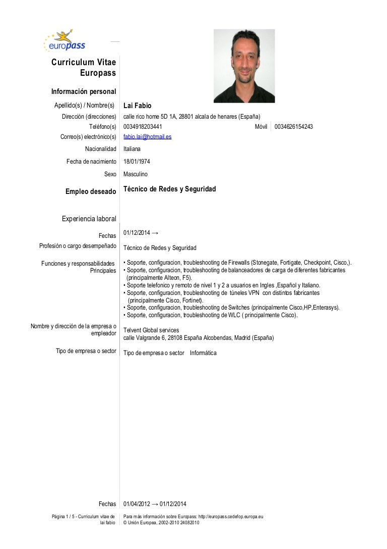 Europass Curriculum Vitae Europeo Template For U