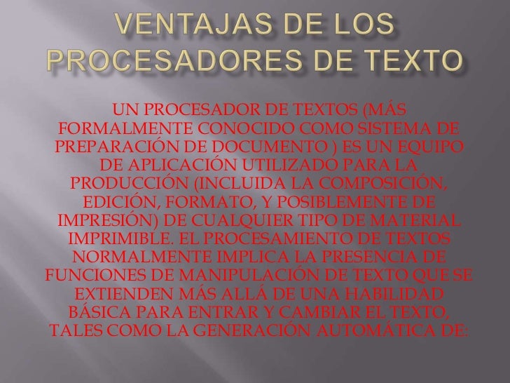 Ventajas y desventajas de los procesadores de textos [PPTX Powerpoint]