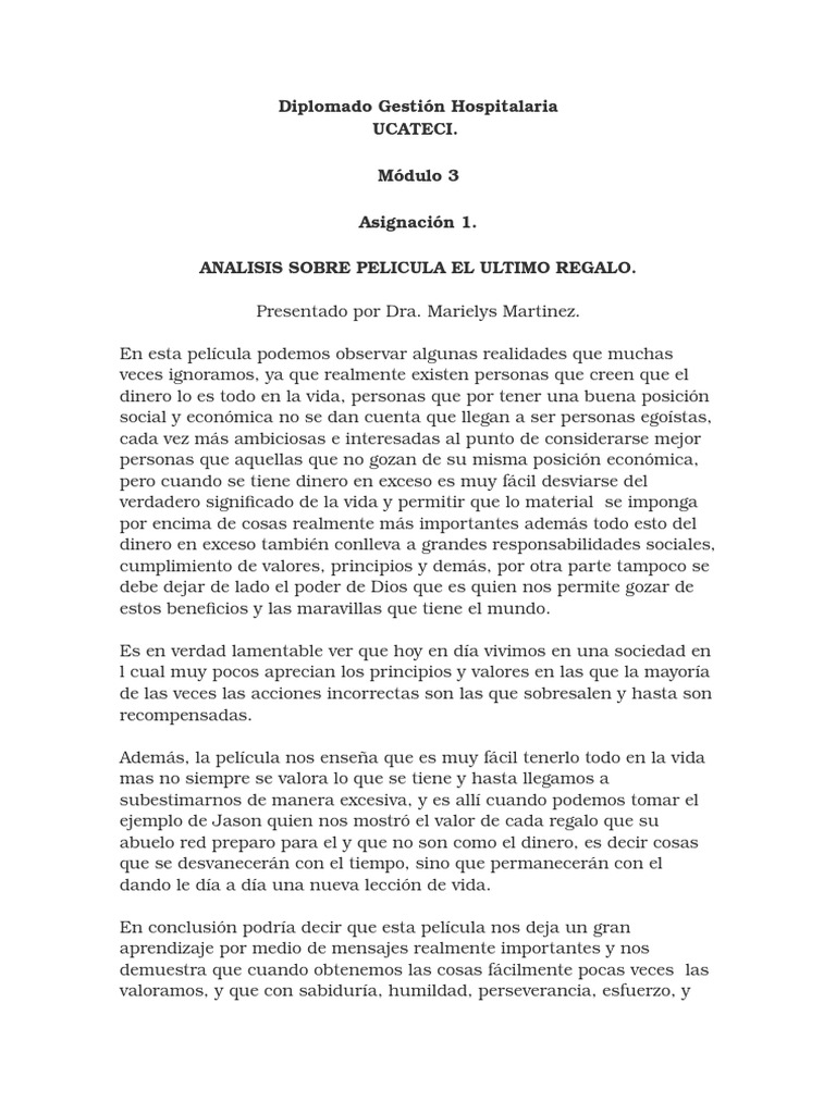 Ensayo Pelicula El Ultimo Regalo | PDF | Amor | Dinero. analisis pelicula el ultimo regalo by reynaldo_medina in Taxonomy_v4 > Self-Improvement > Personal Growth.