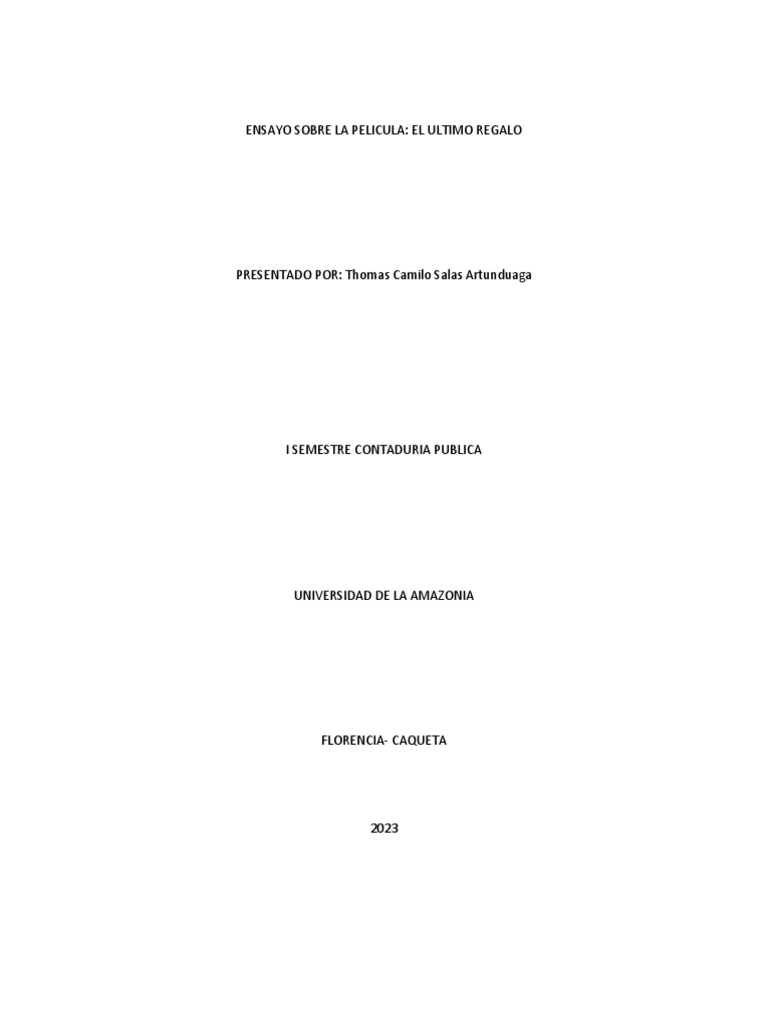 Ensayo Sobre La Pelicula El Ultimo Regalo | PDF. Un poco de la pelicula by thomas2salas-2.