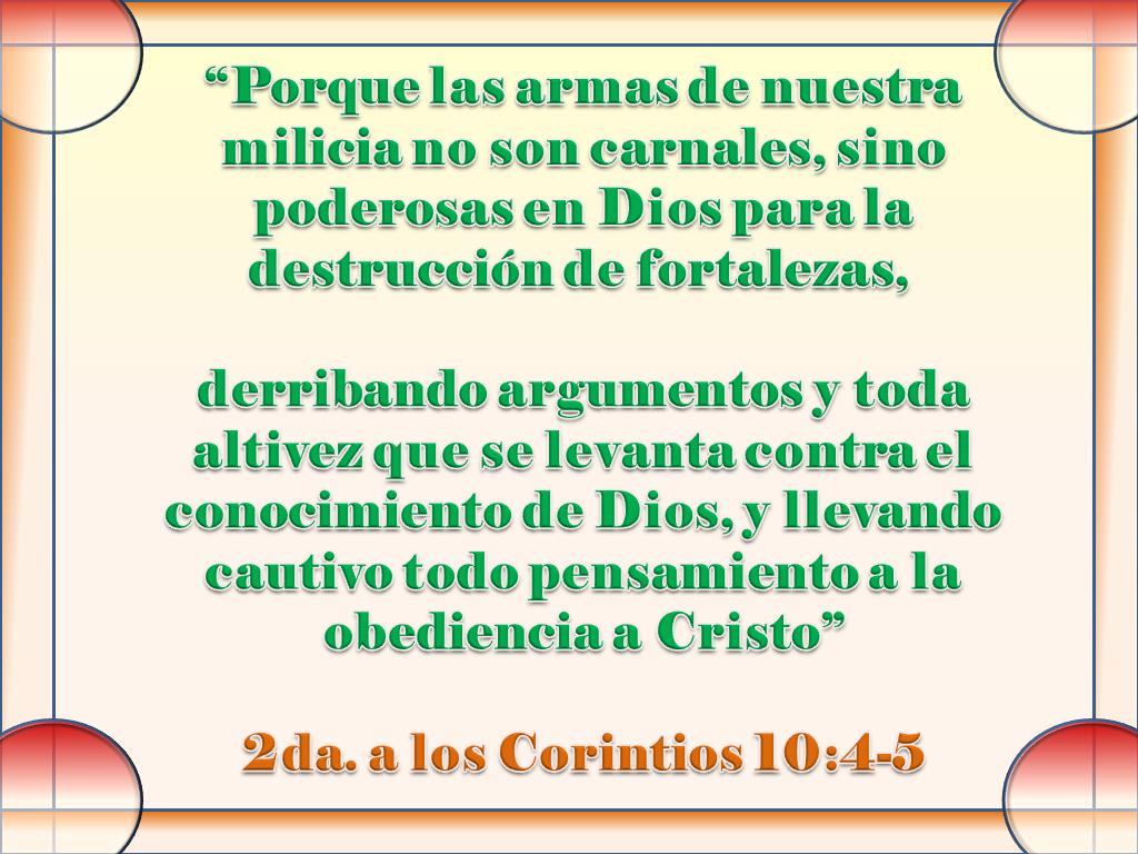 Significado del 2 corintios 10:5 en la Biblia. Explicación, estudio y comentario bíblico de 2 Corintios 10:5 verso por verso. "Destruimos los argumentos y toda altivez que se levanta contra el conocimiento de Dios; llevamos cautivo todo pensamiento a la obediencia de Cristo,"