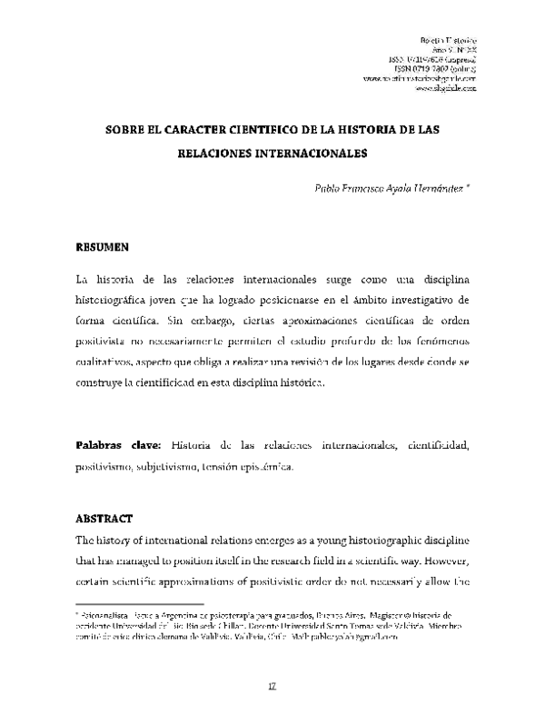 (PDF) Cientificidad de la historia de las relaciones internacionales. en Boletín Histórico. Año