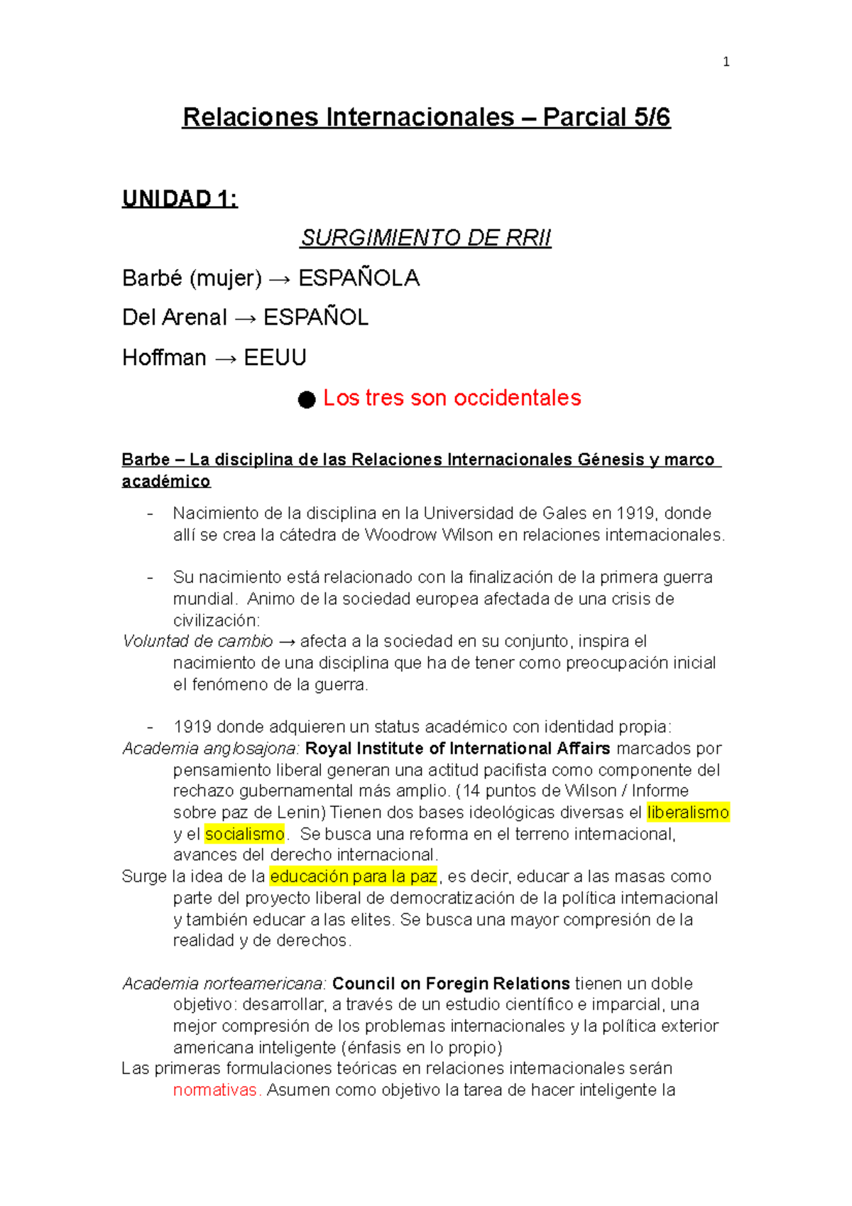 Resumen para final 1 Relaciones Internacionales Parcial UNIDAD 1 SURGIMIENTO DE RRII (mujer