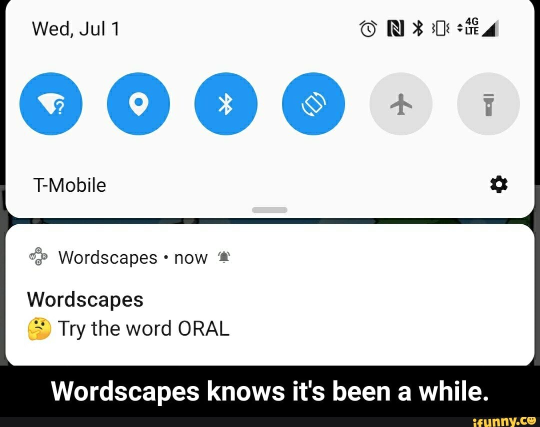 TMobile a Y" Wordscapes now 2 Wordscapes =) Try the word ORAL Wordscapes knows it's been a