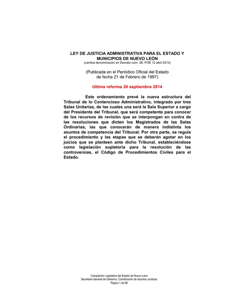 LEY DE Justicia Administrativa LEY DE JUSTICIA ADMINISTRATIVA PARA EL ESTADO DE NUEVO LEON