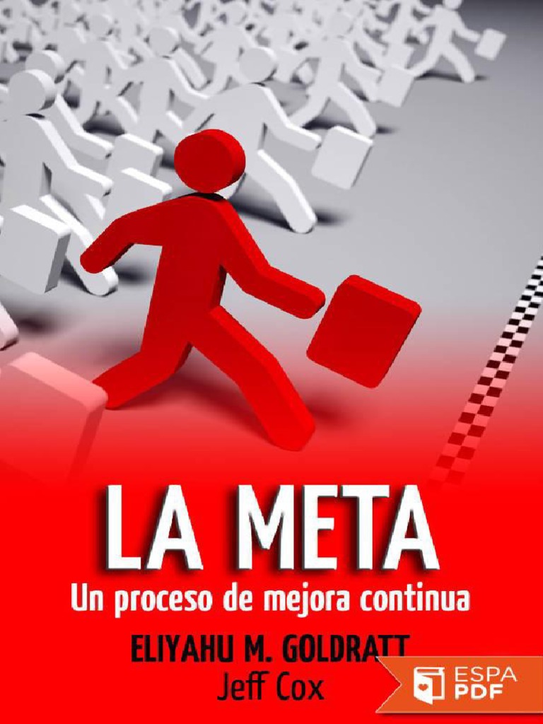 La meta: Un proceso de mejora continua - Eliyuhu M. Goldratt. La Meta es una novela de administración escrita por Eliyahu M. Goldratt, un consultor de negocios cuya Teoría de las limitaciones ha servido como modelo para la administración de sistemas y negocios. Fue publicada originalmente en 1984, y desde entonces ha sido revisada y.