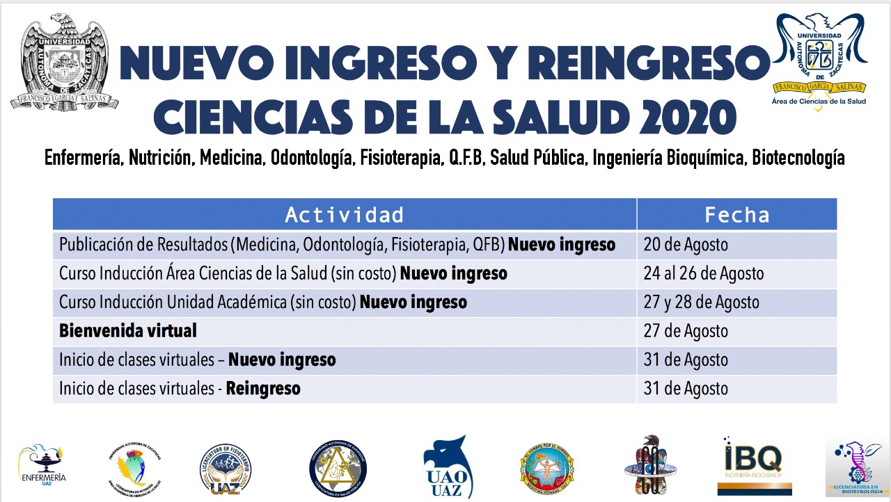 Enfermería UAZ Calendario de nuevo ingreso y reingreso al Área de Ciencias de la Salud