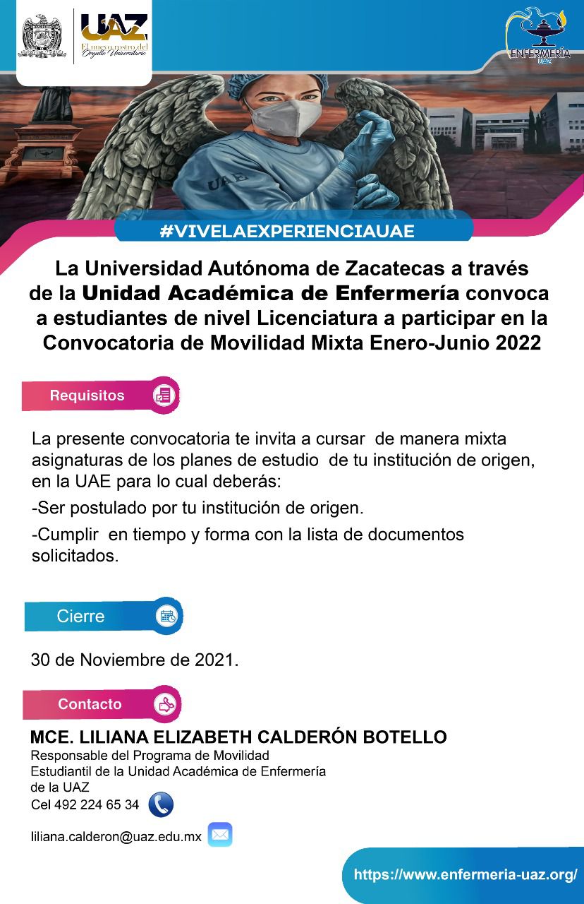 Enfermería UAZ Convocatoria movilidad estudiantil enerojulio 2022