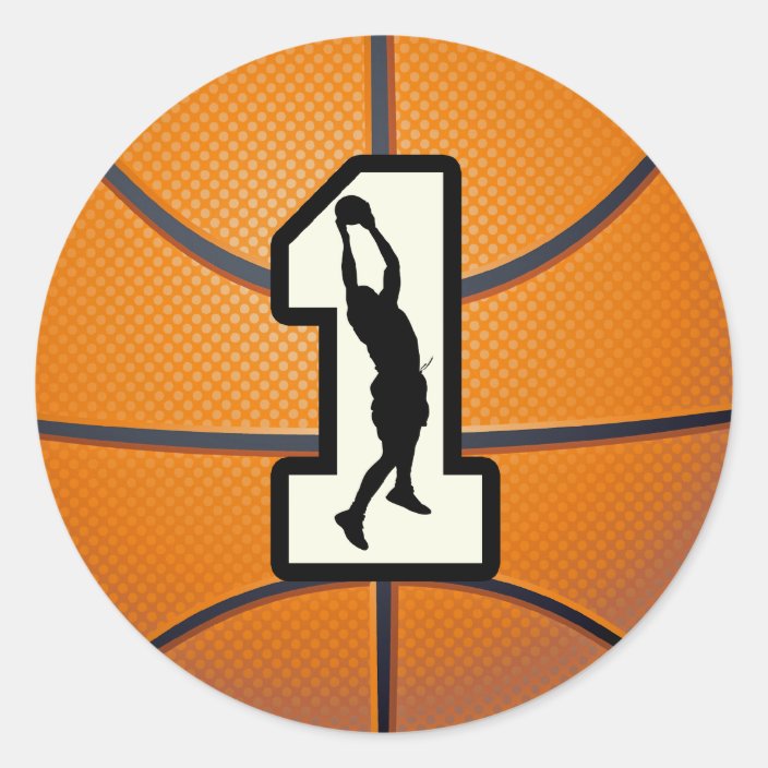 Pegatina Redonda Baloncesto y jugador del número 1 Zazzle.es