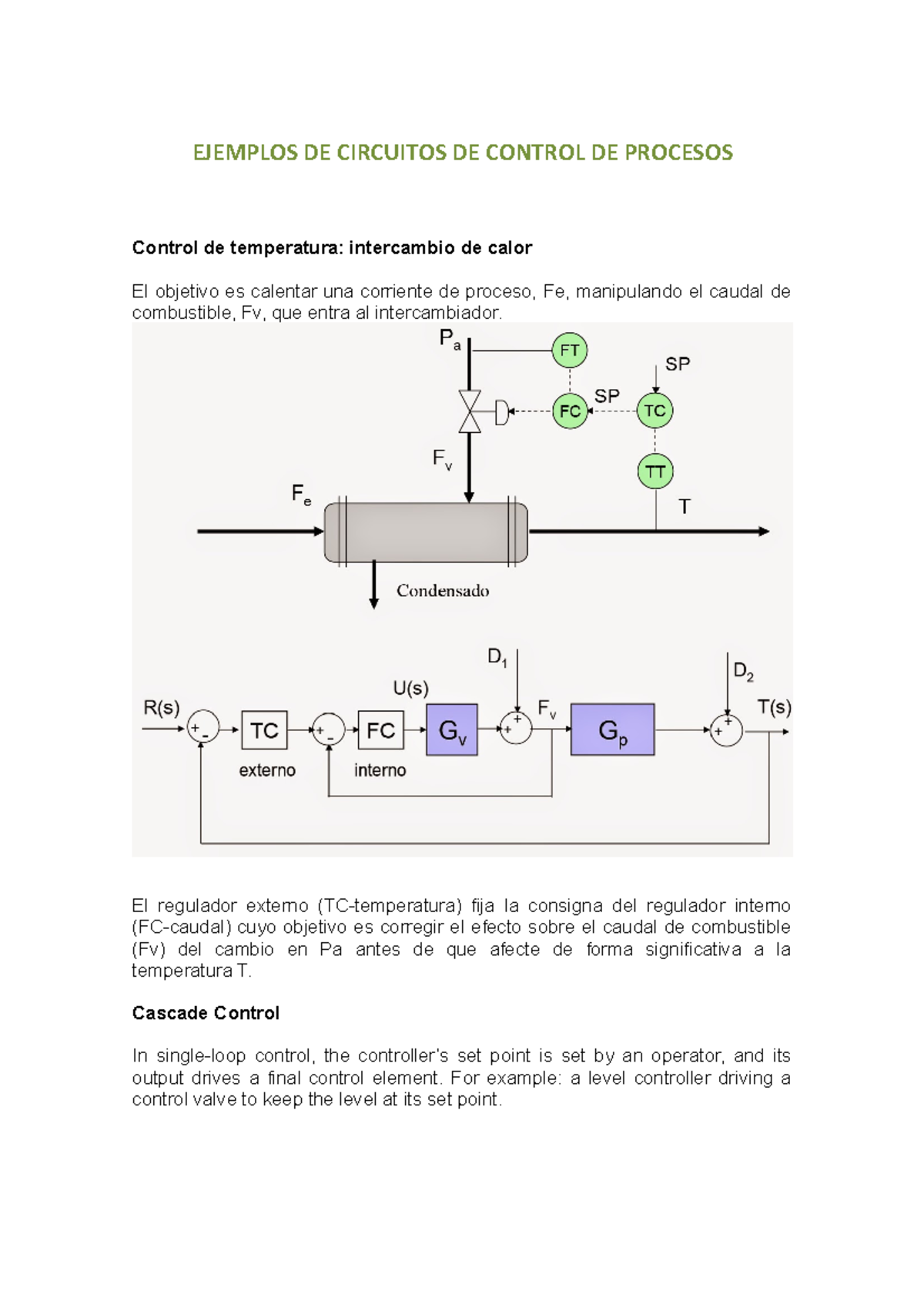 Tarea 2 EJEMPLOS DE CIRCUITOS DE CONTROL DE PROCESOS Control de temperatura intercambio de