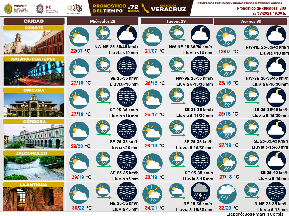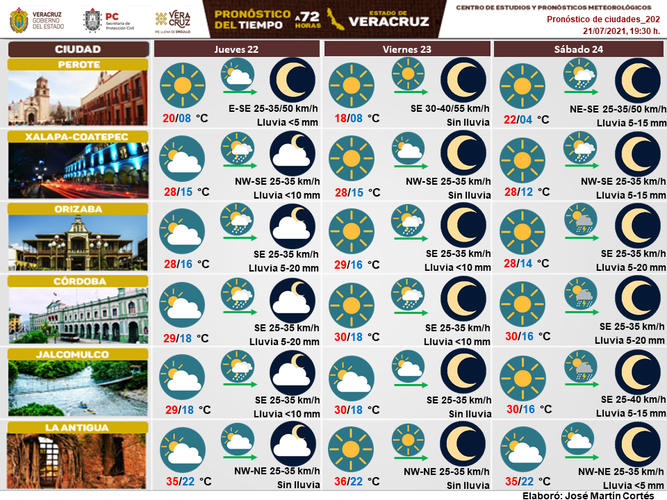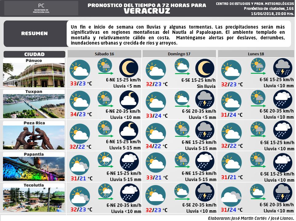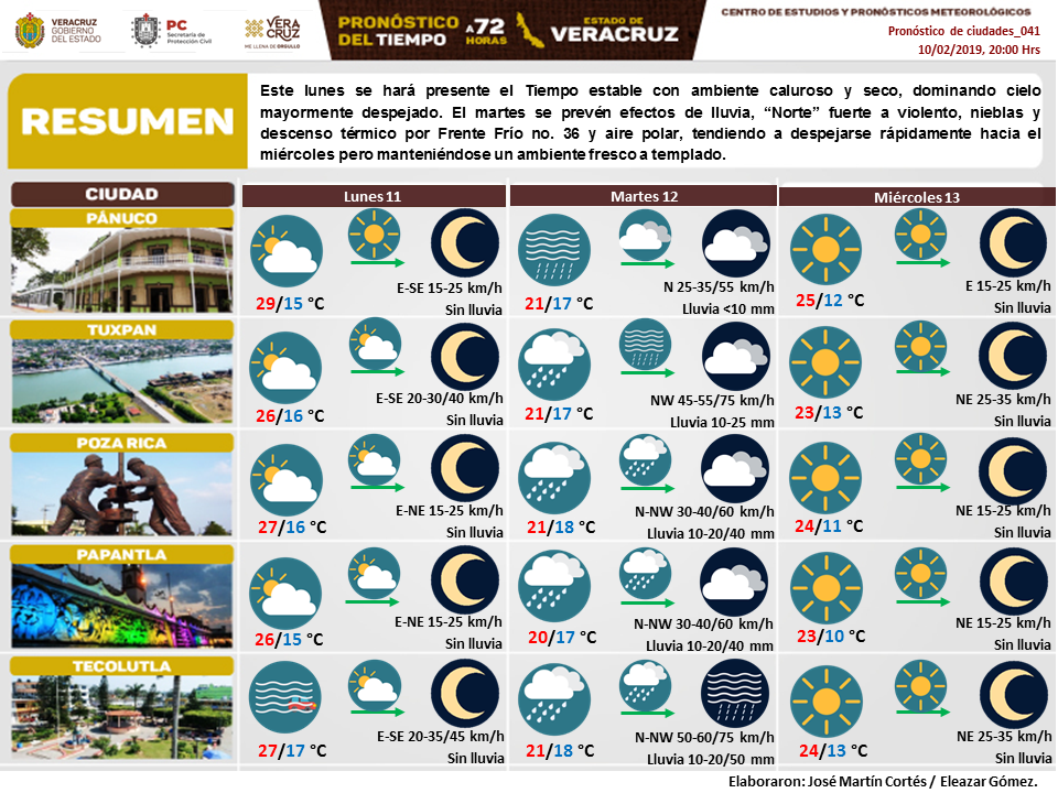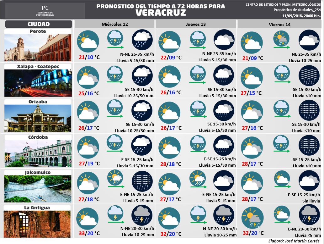 Secretaria de Protección Civil Veracruz Meteorología. Pronóstico del tiempo a 72 horas, 19