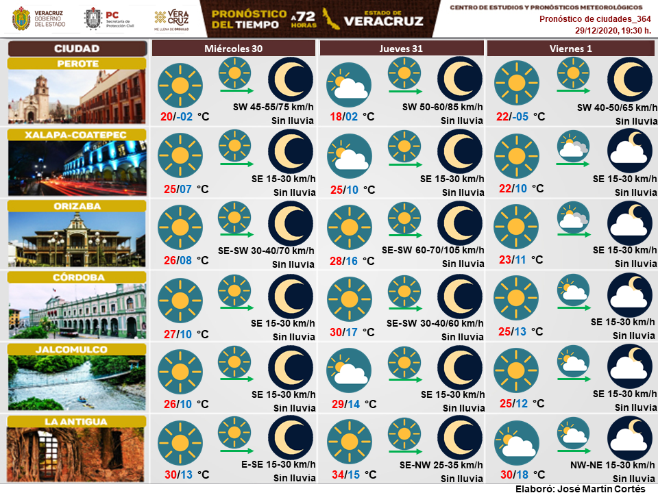 Secretaria de Protección Civil Veracruz Meteorología. Pronóstico del tiempo a 72 horas, 30