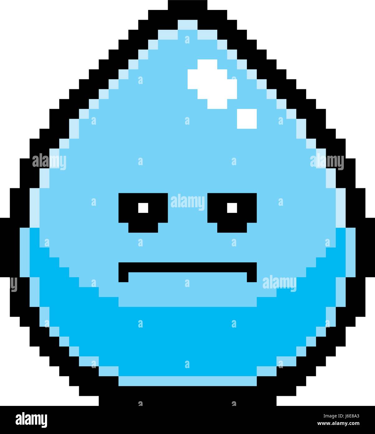 Una ilustración de una gota de agua buscando grave en un estilo de dibujos animados de 8 bits