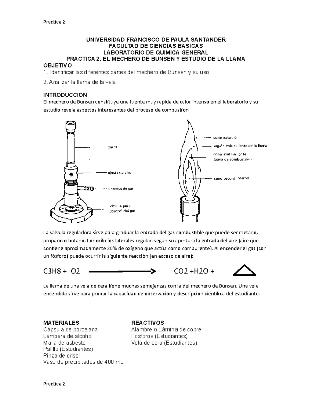 Practica 2 Mechero Bunsen Y Estudio DE LA Llama UNIVERSIDAD FRANCISCO DE PAULA SANTANDER